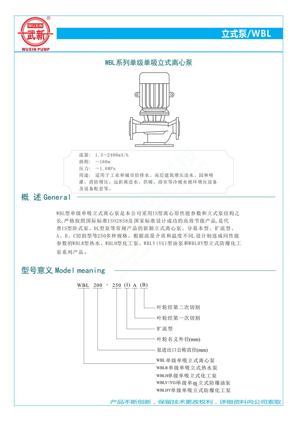 WBL型單級單吸立式離心泵